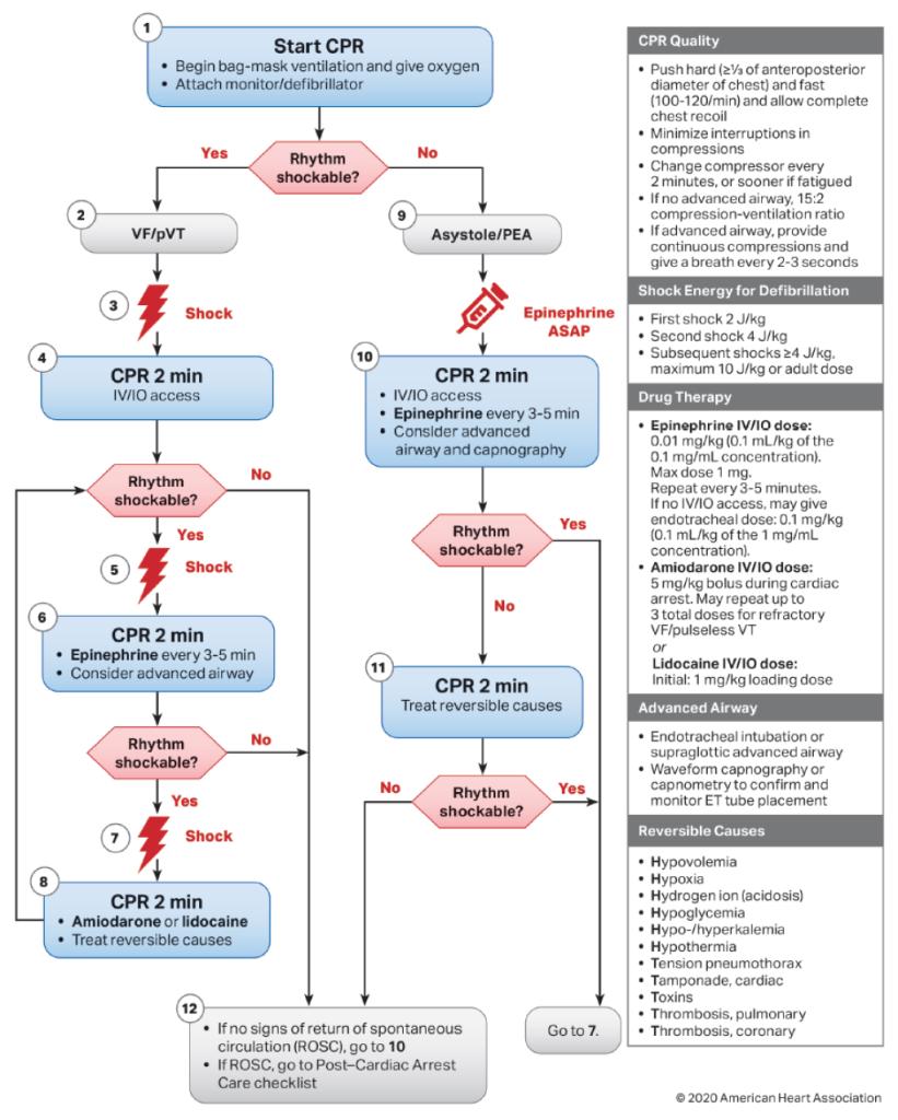 8. Algorithme de prise en charge des urgences cardiaques : Maîtriser les différentes étapes et décisions critiques dans la gestion des urgences cardiaques selon les algorithmes ACLS.
