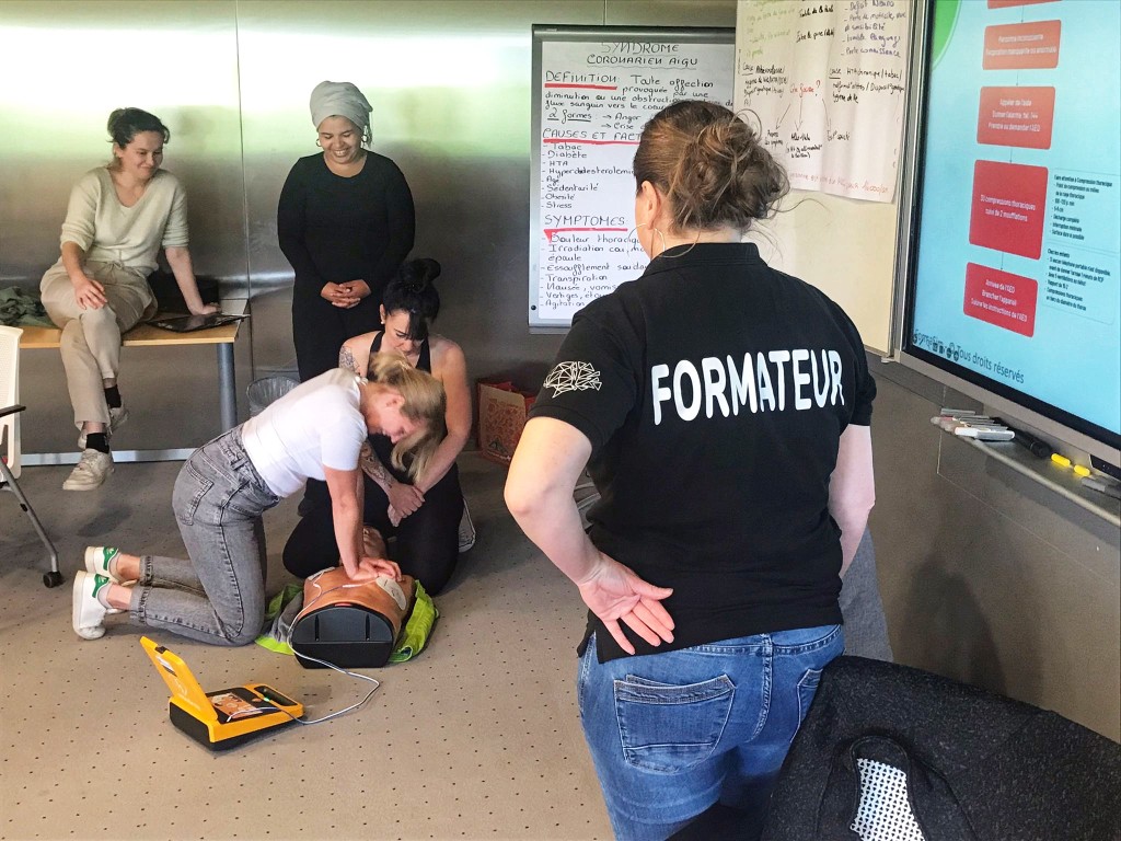 🔷 Réanimation cardio-pulmonaire (RCP) : apprentissage et mise en pratique sur mannequin adulte/enfant.